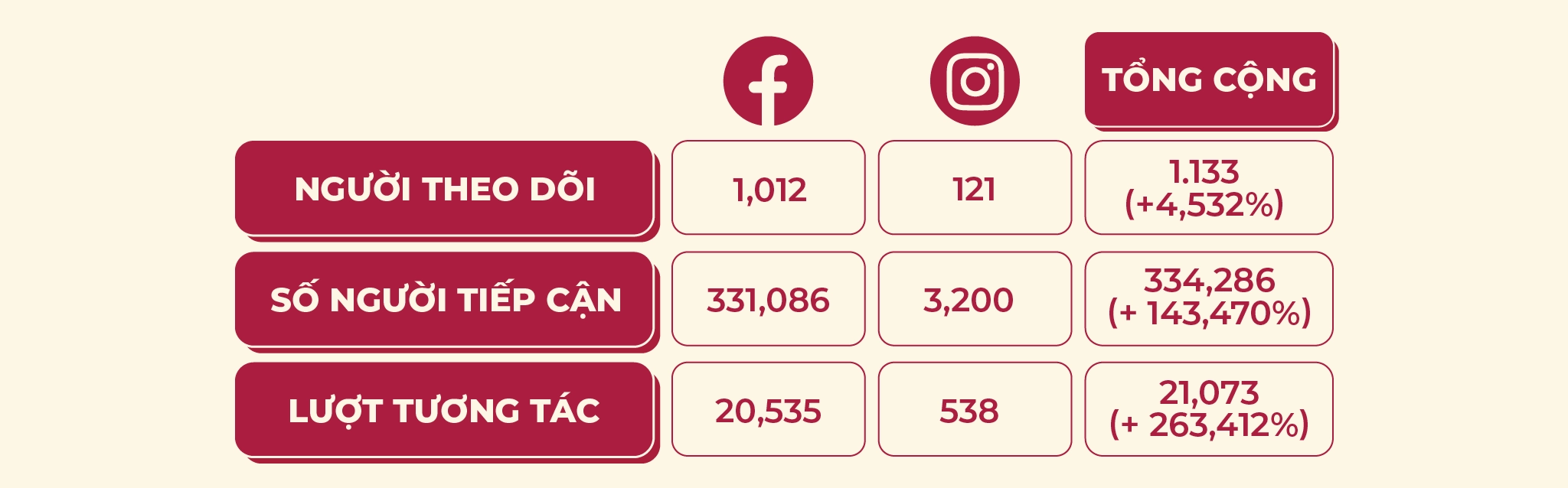 - Tăng trưởng hơn 300% lượt theo dõi mới trên Facebook và Instagram.